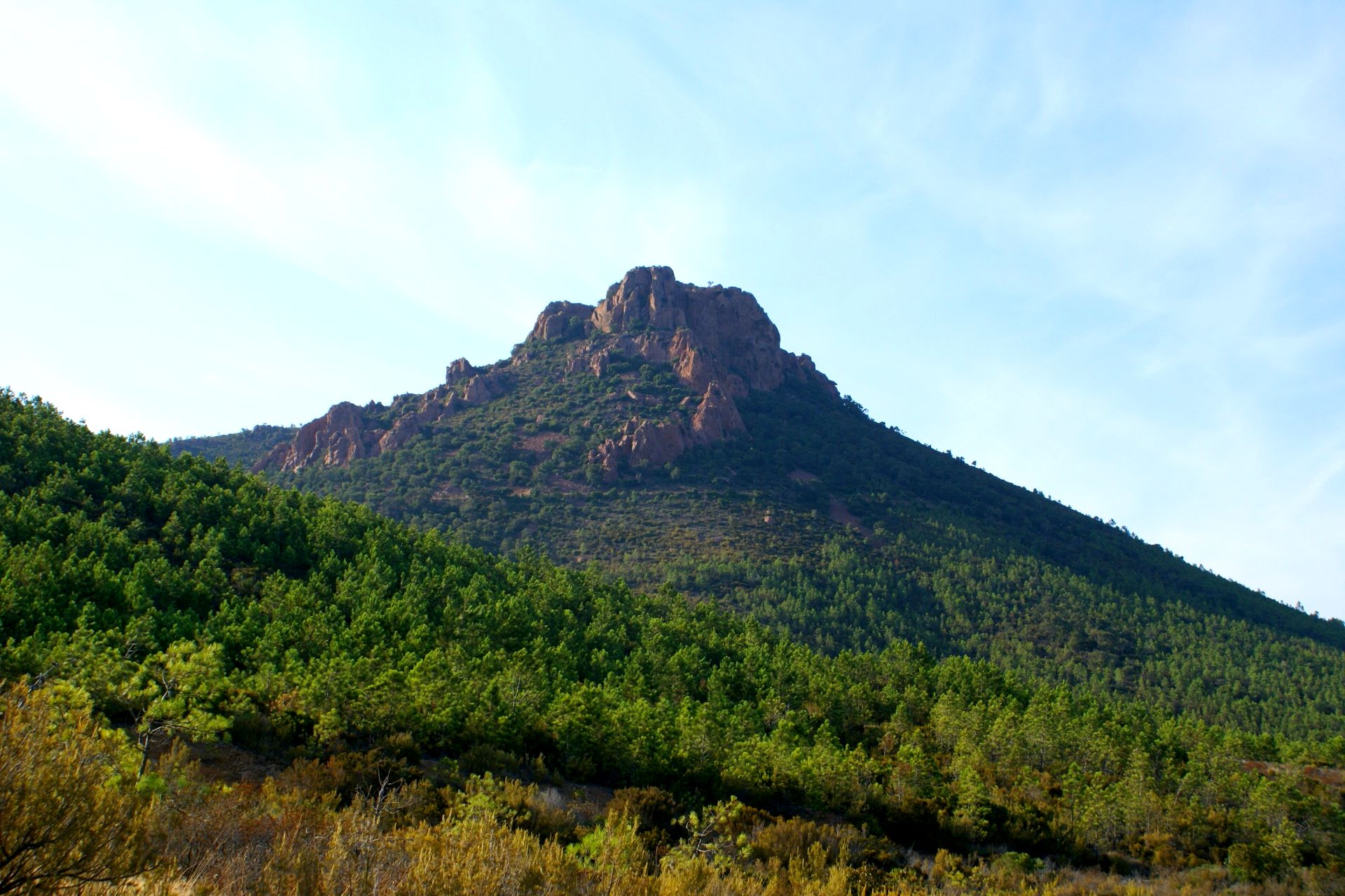 Epoustouflant ! En plein coeur de la Côte d'Azur entre Saint-Raphaël et La Napoule (près de Cannes), se situe la Corniche de l'Esterel, route (la N 98) longeant de magnifiques ports, plages, baies, pointes et calanques côté mer Méditerranée, tout en nous permettant de rester en pleine admiration sur différents cols et sommet du Massif de l'Esterel (ex : col de Saint-Pilon près du plateau d'Anthéor) à l'intérieur des terres.